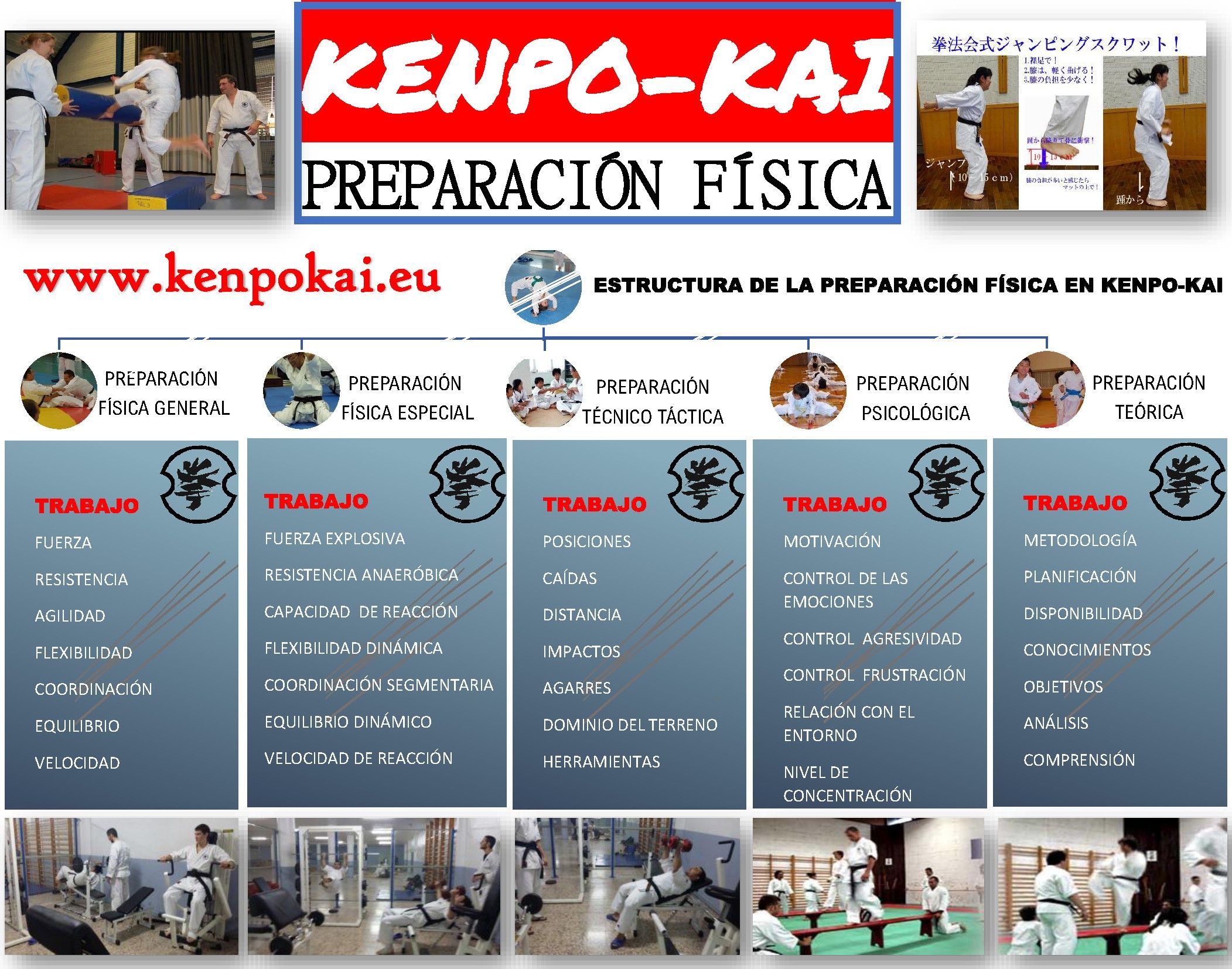 La preparación física en Kenpo Kai se fundamenta en el principio de que la salud debe prevalecer sobre los resultados deportivos. El Junbi Taisho comprende ejercicios cardiovasculares, gimnásticos y de equilibrio que se realizan sistemáticamente en el dojo para mejorar la condición física general, la flexibilidad y establecer las bases para movimientos de esquiva efectivos.