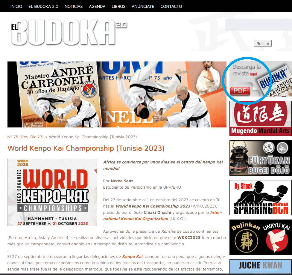 KENPO-KAI EN «EL BUDOKA 2.0» La publicación de Artes Marciales «EL BUDOKA 2.0» (Online), es la mejor revista de Artes Marciales en Castellano, cuya editorial «EDITORIAL ALAS» acaba de cumplir 100 años, siendo un referente en libros y prensa escrita relacionadas con las Artes Marciales y los deportes de combate. En el número 75 (de […]